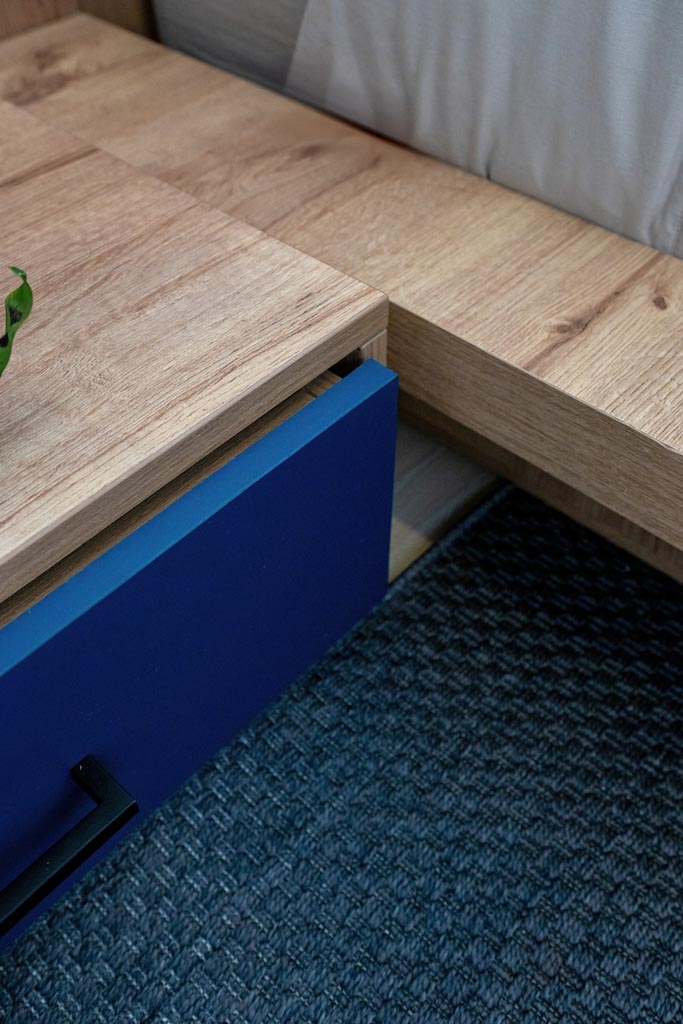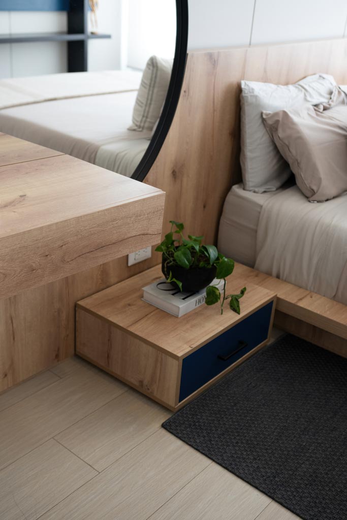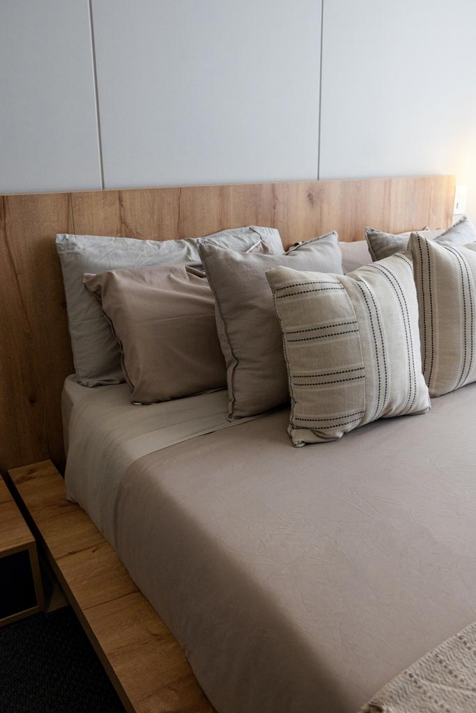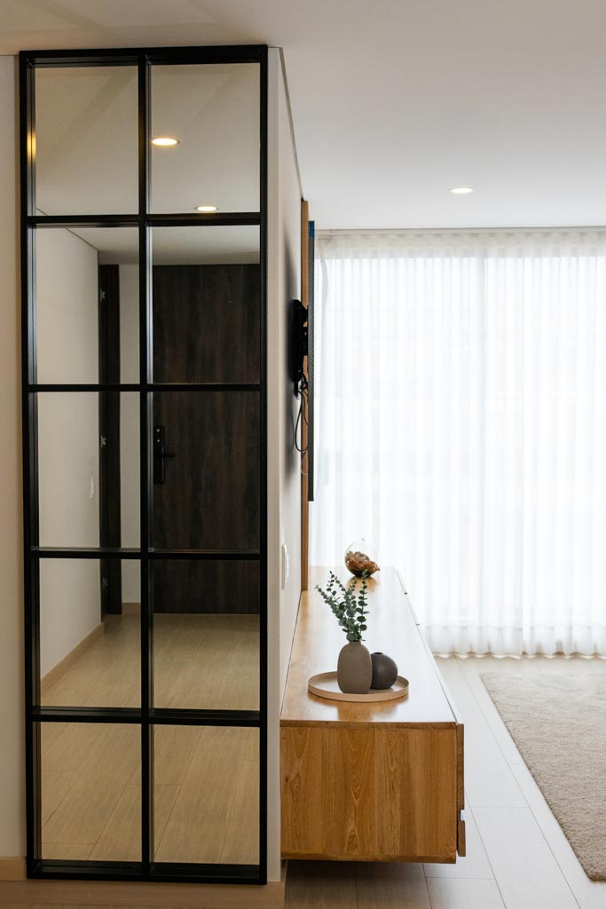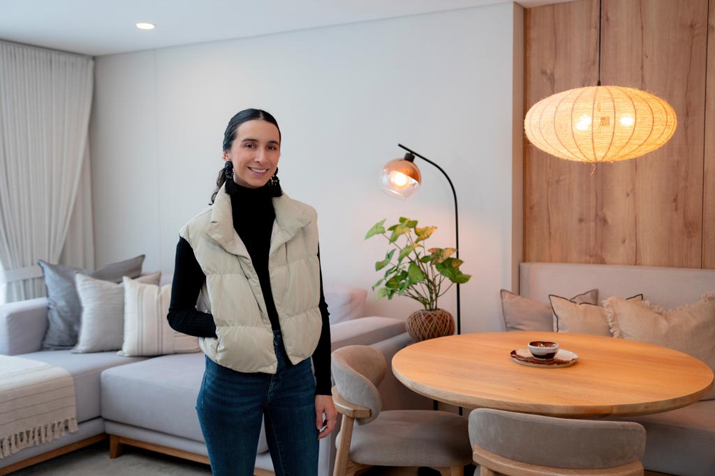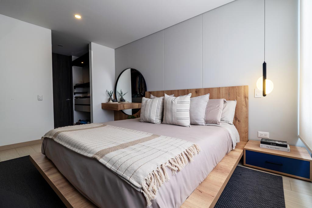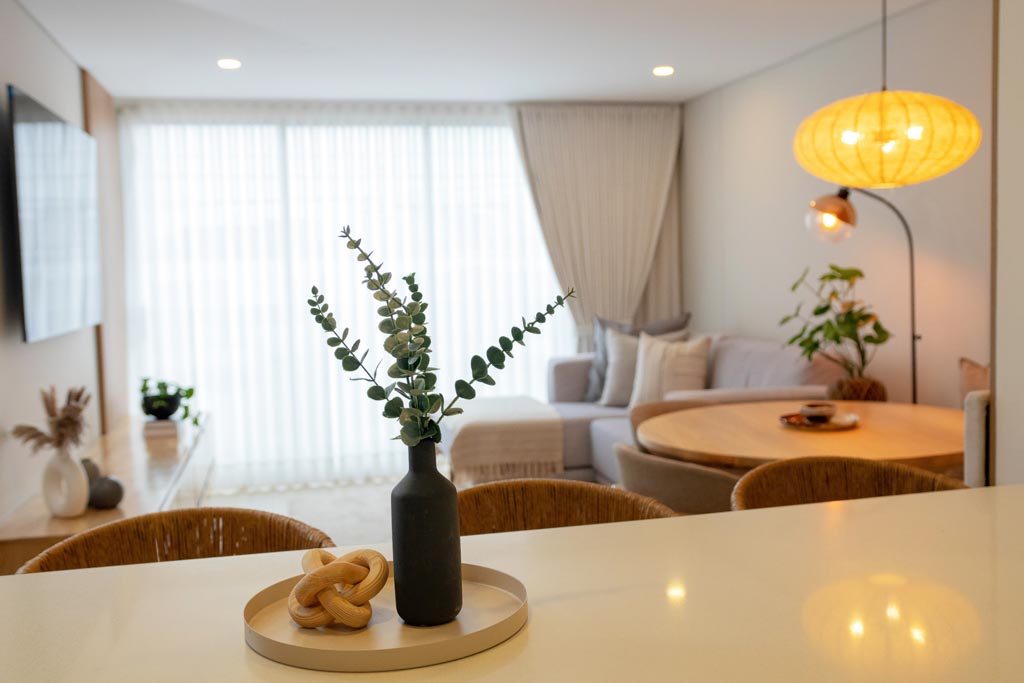 Este proyecto de diseño interior residencial fue creado para aprovechar cada metro del espacio, combinando funcionalidad y calidez. La luz natural se filtra suavemente a través de las cortinas, resaltando los tonos neutros y las texturas suaves del mobiliario. La madera natural en paredes y muebles aporta una sensación acogedora, mientras que los tejidos y cojines en lino completan una atmósfera relajada y hogareña. Un diseño pensado para disfrutar tanto los momentos de descanso como los encuentros cotidianos, donde la armonía visual se siente en cada detalle.