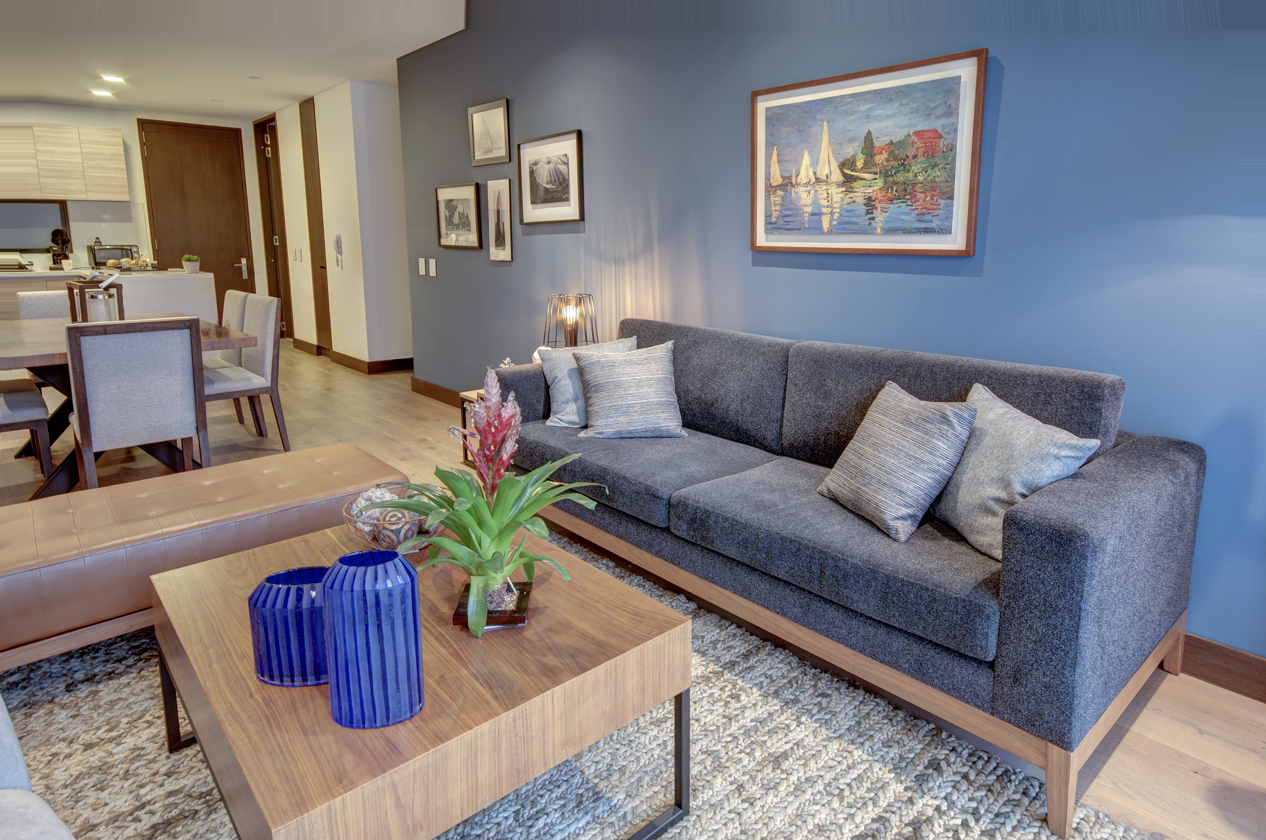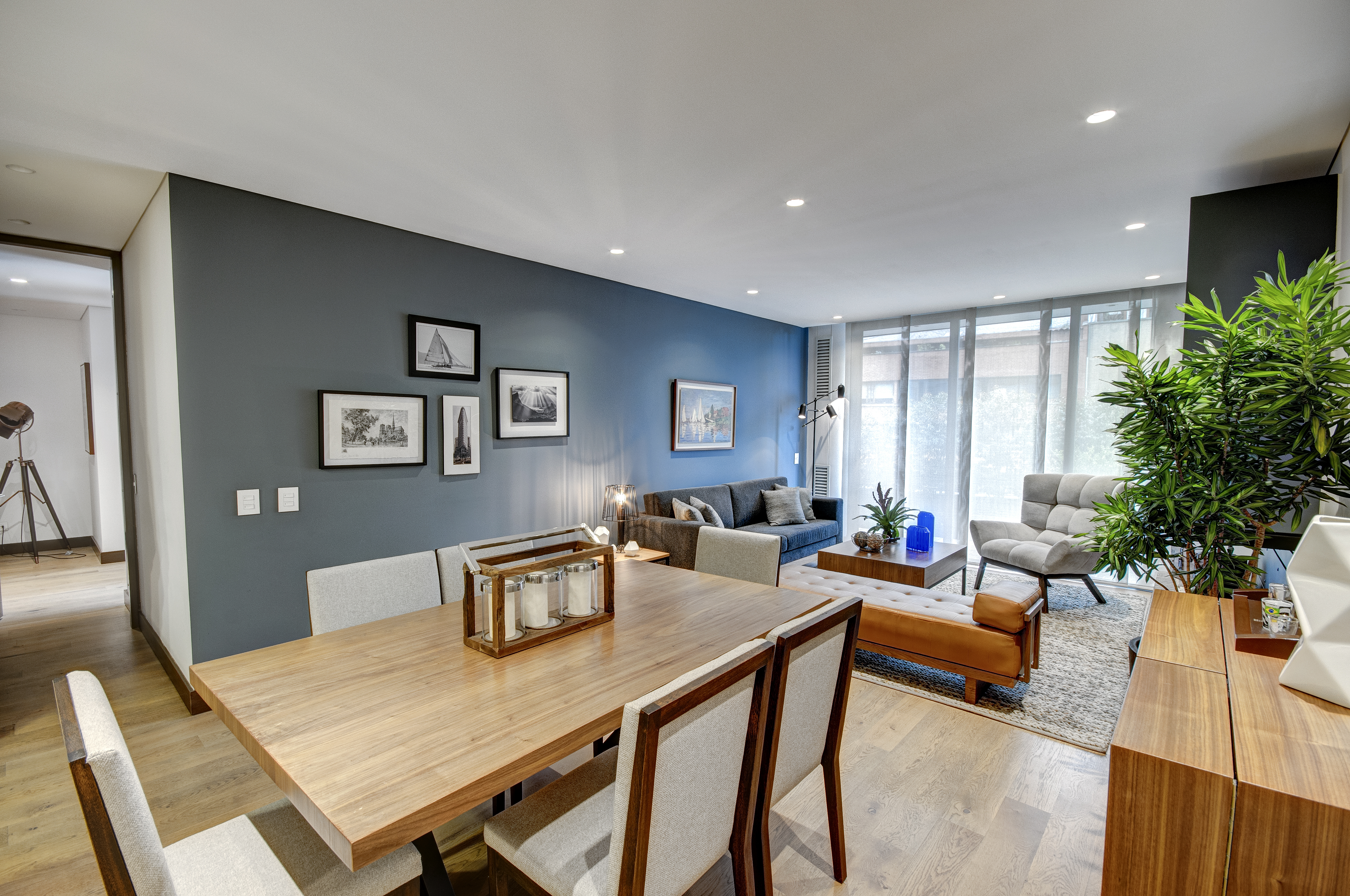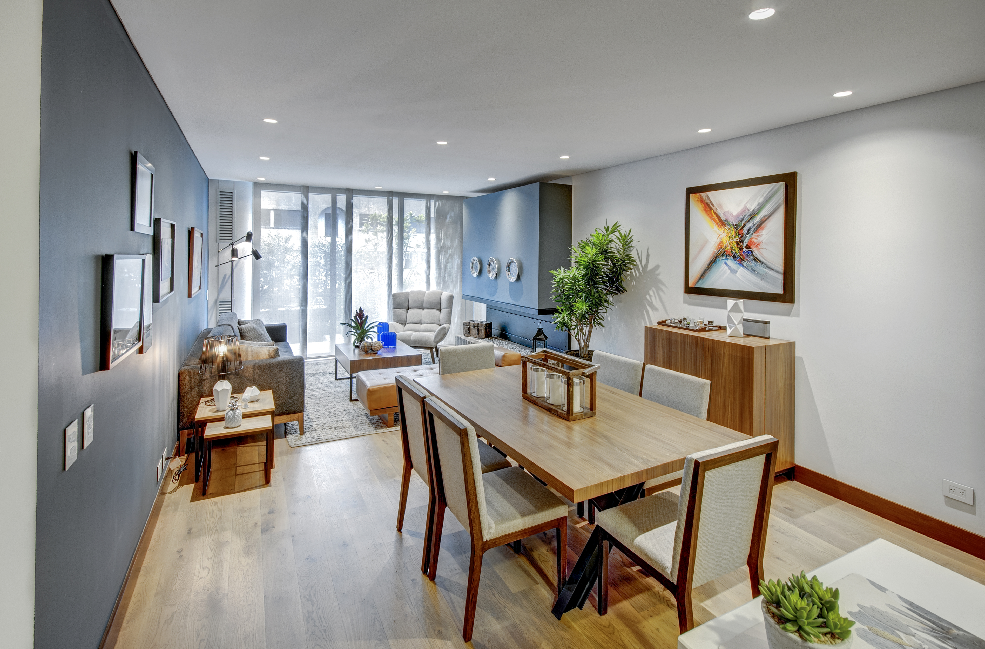 Este proyecto de diseño interior residencial integra sala y comedor en un espacio social de concepto abierto, pensado para favorecer la amplitud, la luz y la fluidez en la circulación. La distribución permite una conexión natural entre ambientes, logrando un espacio funcional, cómodo y coherente para el día a día y la vida social.